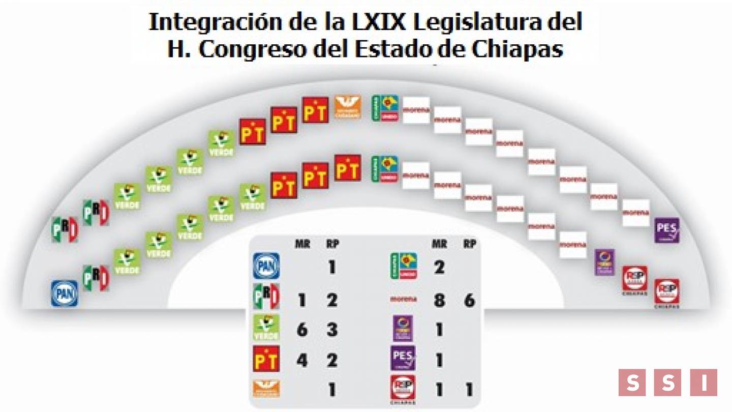 Con esta designación, el Consejo General del IEPC informa que la conformación de la LXIX Legislatura del H. Congreso del Estado de Chiapas, queda de la siguiente manera: