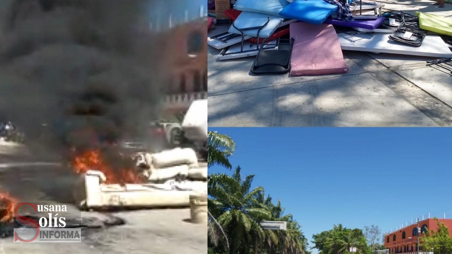 Se inconformaron por invadir espacios públicos, bloquearon vialidades, quemaron llantas y retiraron colchonetas del lugar donde estaban albergados los migrantes.