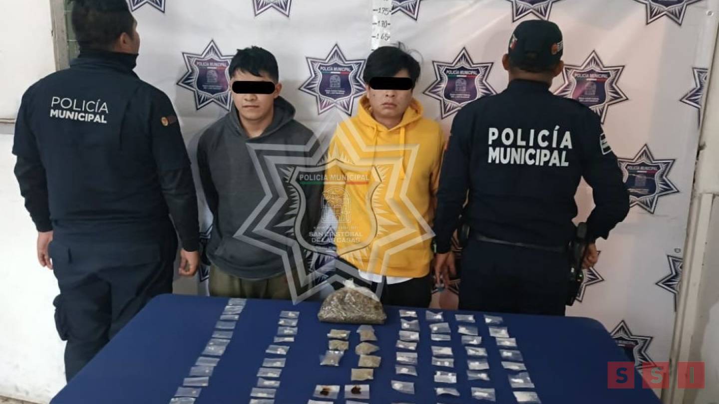 Elementos de la Dirección de la Policía Municipal de San Cristóbal de Las Casas lograron la detención de dos jóvenes, de nombres Ángel de Jesús “N”, de 24 años de edad, y Eli Gamaliel “N”, de 20 años, a quienes se les encontró en posesión de narcóticos en diferentes presentaciones.