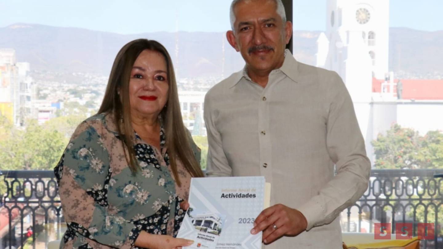 El fiscal general del Estado, Olaf Gómez. Hernández , hizo entrega del Informe Anual de Actividades 2023 a la presidenta de la Mesa Directiva del Congreso del Estado, diputada Sonia Catalina Álvarez.