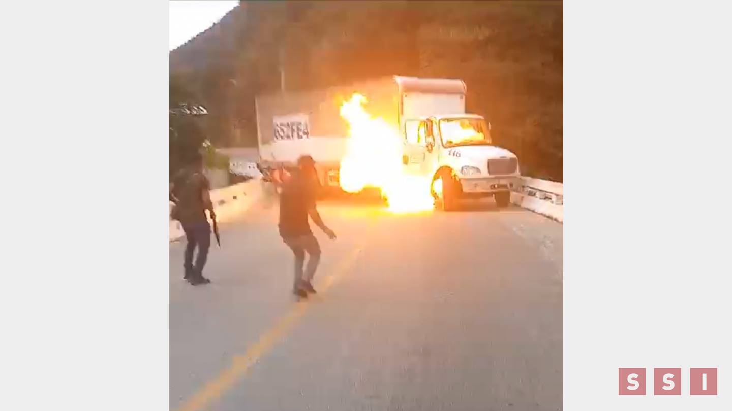 Un grupo de hombres armados quemó un camión de carga sobre un puente del municipio fronterizo de Mazapa de Madero en Chiapas con el cual bloquearon la carretera.