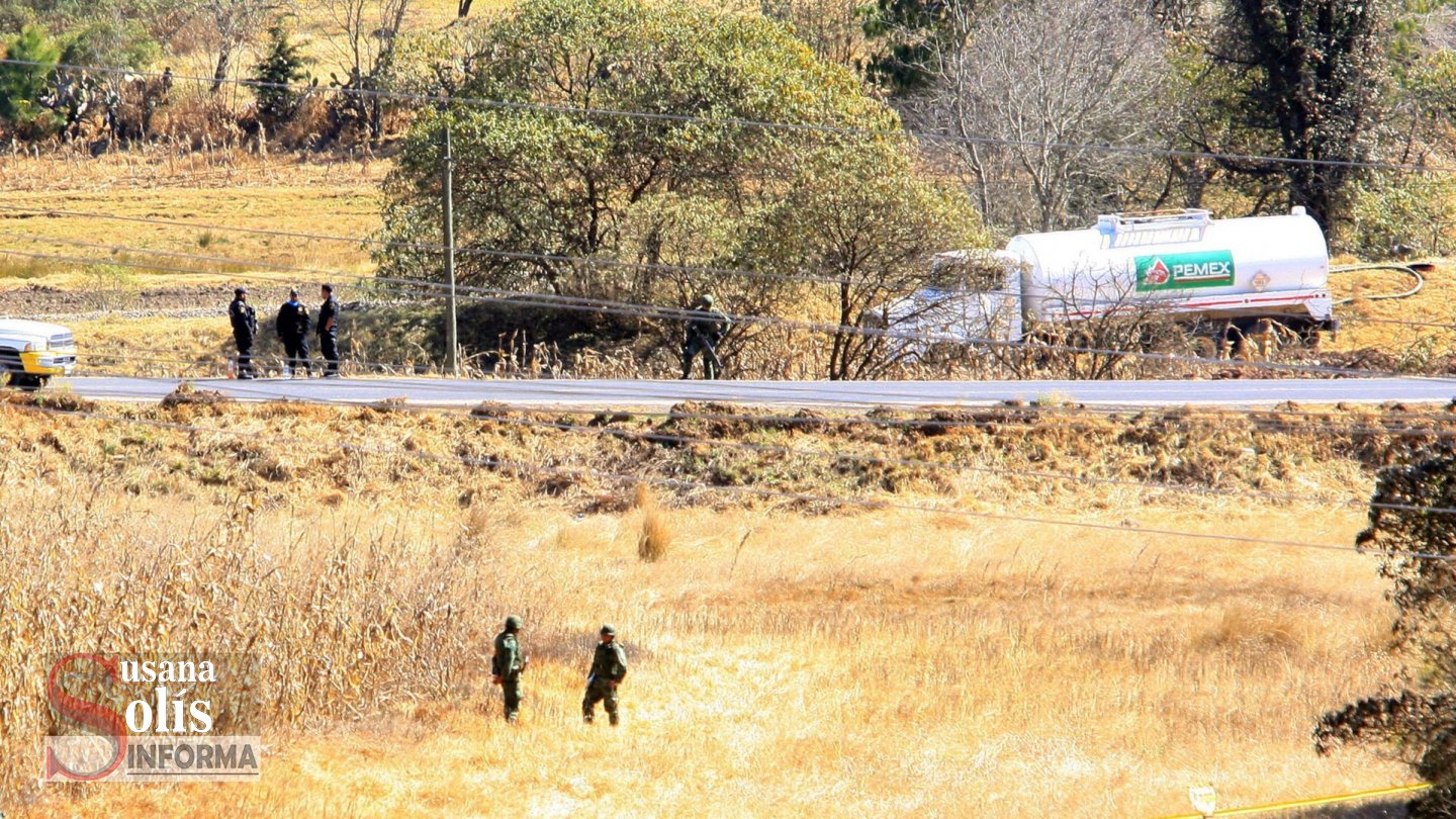 Miembros del Ejército hallaron en la periferia de la bodega cuatro vehículos y dos camiones cargados con “huachicol”.