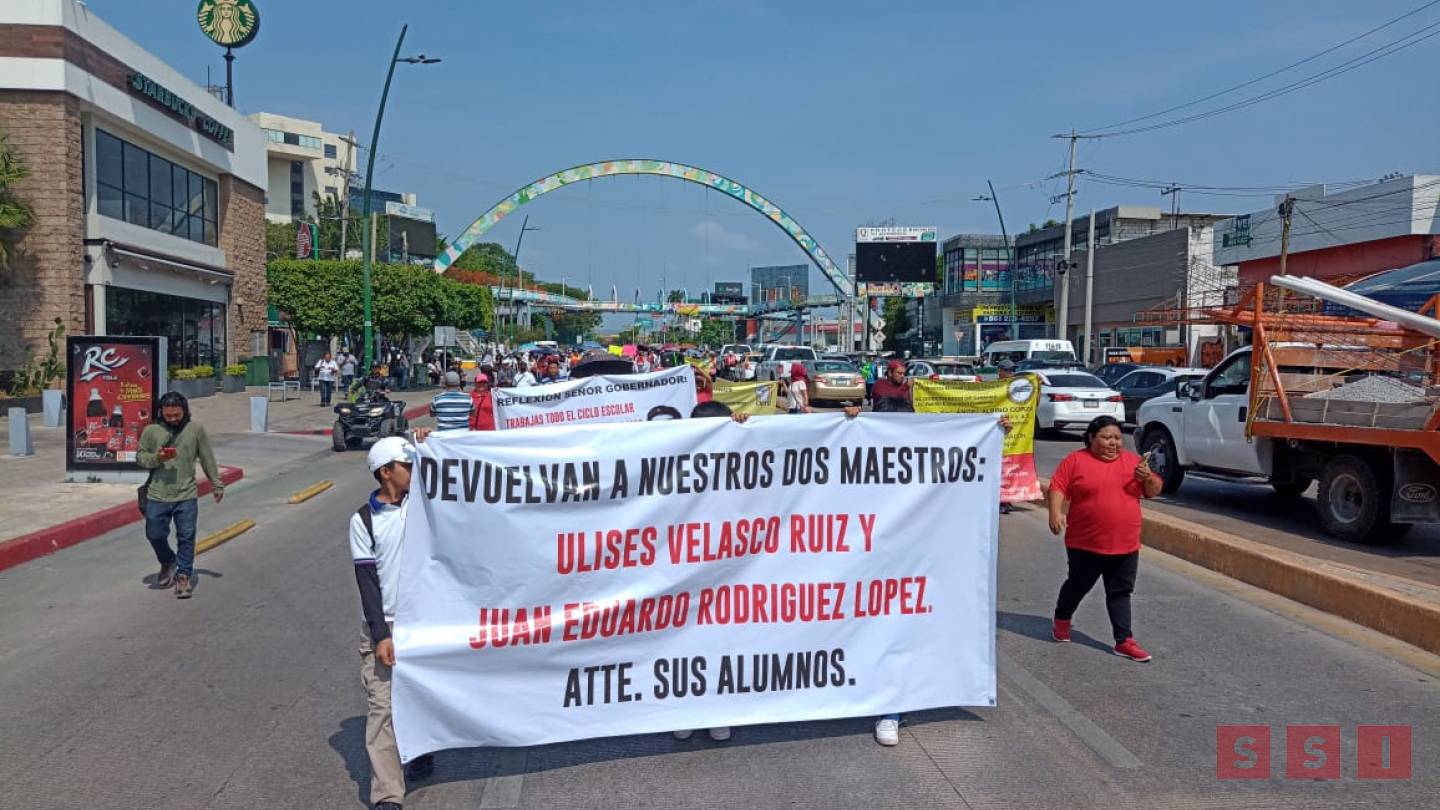 Padres de familia, alumnos y líderes sindicales se manifestaron para pedir la reinstalación de dos maestros que fueron cesados de la Secundaria Ricardo Flores Magón en Tuxtla Gutiérrez en general en Chiapas hay 45 docentes destituidos.