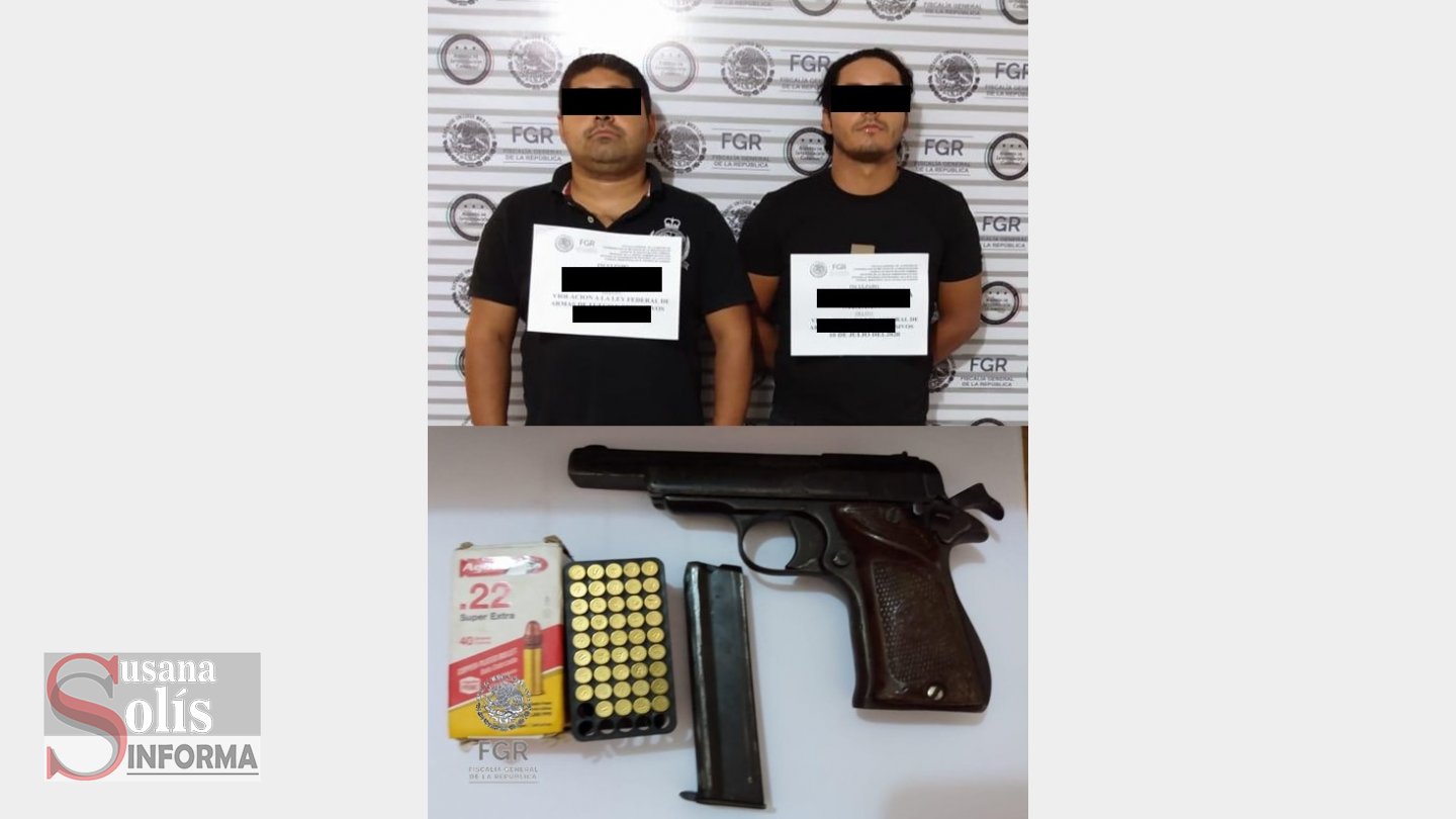 En una segunda acción, se detuvo a Manuel “V” y Rogelio “V”, sobre la carretera federal Villahermosa-Francisco Escárcega, ejido Nueva Esperanza, del municipio de Palenque, a quienes se les aseguró un arma de fuego tipo pistola calibre 22, un cargador y 44 cartuchos útiles del mismo calibre, así como un vehículo con placas de circulación del estado de Tabasco.