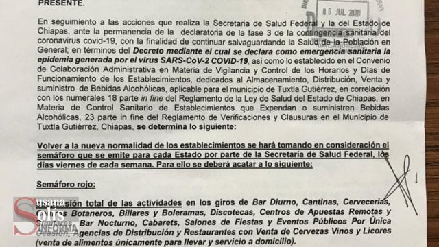 La dirección de Verificaciones y Clausuras del ayuntamiento de Tuxtla Gutiérrez informó a los propietarios de establecimientos con venta de bebidas alcohólicas que se tendrán que acatar al semáforo epidemiológico que determine la secretaría de Salud Federal y actualmente #Chiapas se ubica en rojo.