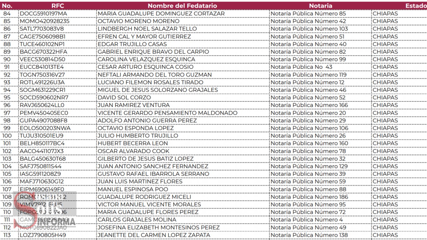 En total son 36 Notarios Públicos de Chiapas que fueron señalados por el Servicio de Administración Tributaria