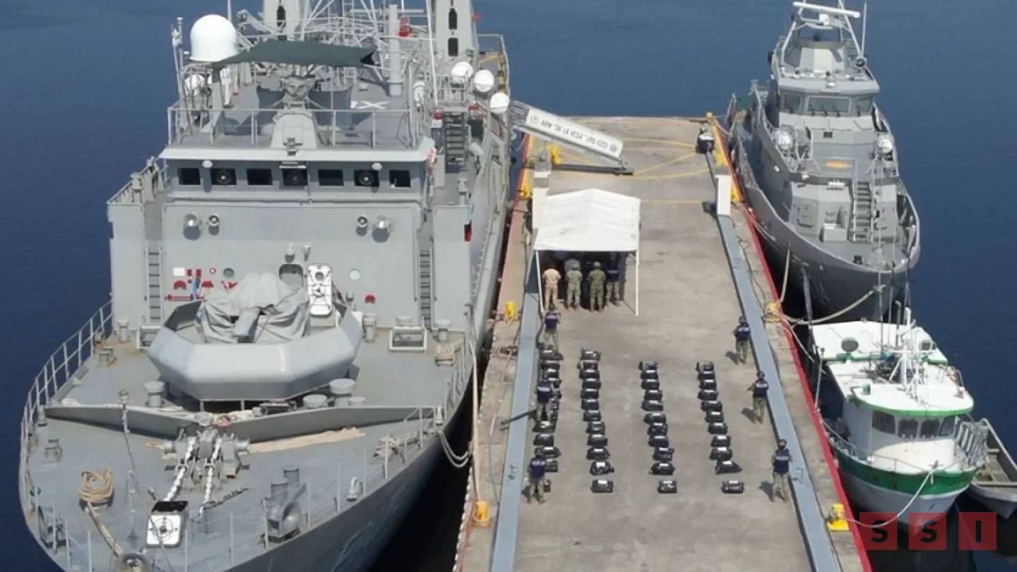 Elementos de la Secretaría de Marina-Armada de México (Semar), aseguraron 46 bultos con 920 paquetes tipo ladrillo en su interior, con un peso aproximado de mil kilogramos de clorhidrato de cocaína, que flotaba a la deriva en aguas del Pacífico mexicano frente a las costas de Chiapas.
