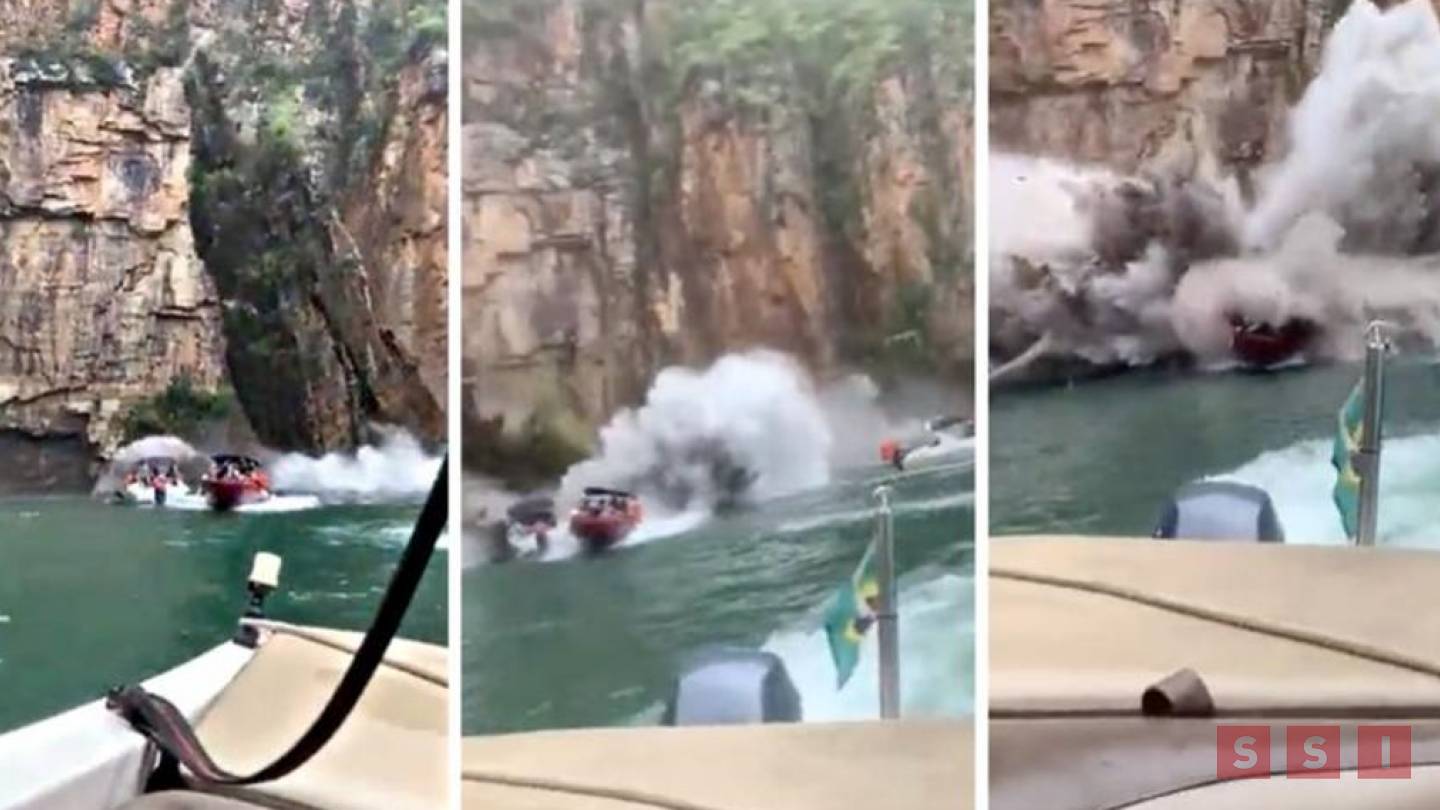 En Brasil, una enorme roca se desprendió de un acantilado y cayó este sábado sobre unas lanchas que estaban en el lago de Furnas, ubicado en el municipio de Capitolio, en Minas Gerais.