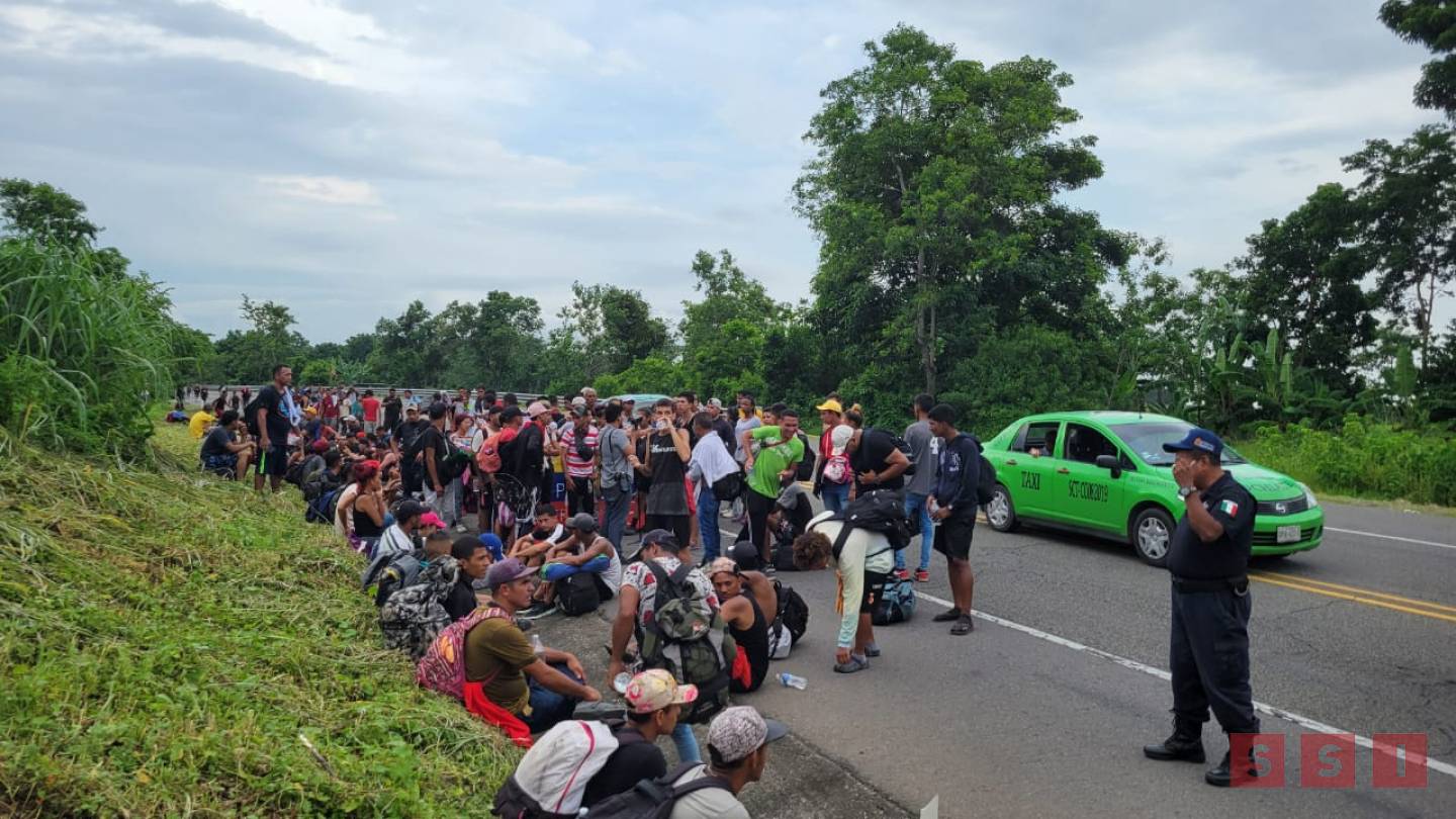 En su tránsito de este grupo de migrantes, integrantes del grupo” Beta”, invitan a las personas para seguir caminando y a otros subirse a los colectivos de manera pacífica sobre el acotamiento de la carretera hasta llegar a Tapachula.