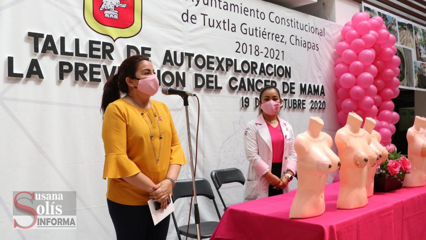 En el marco del Día Mundial de la Lucha contra el Cáncer de mama, el gobierno de Tuxtla Gutiérrez llevó a cabo un taller de autoexploración mamaria para detectar de manera oportuna este tipo de cáncer, actividad que se realiza de manera permanente en las Clínicas de la Mujer Oriente y Poniente de la Secretaría de Salud Municipal de manera gratuita.