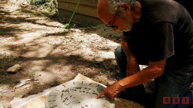 “Luego de explorar la cripta, comenzamos a investigar el costado sur buscando alguna simetría en la arquitectura, lo que nos permitió hallar este disco, el cual había sido empotrado al edificio, ya descontextualizado de su sitio original, probablemente un altar”.
