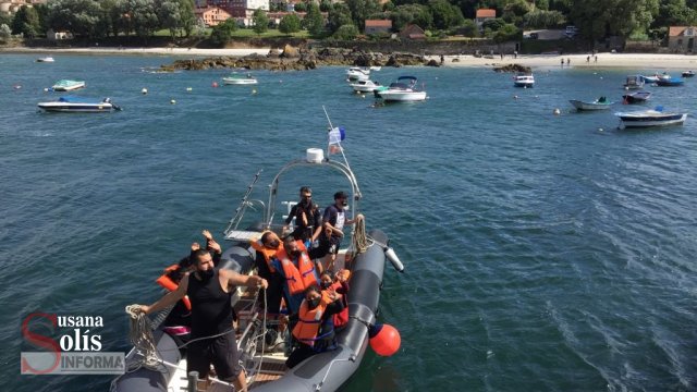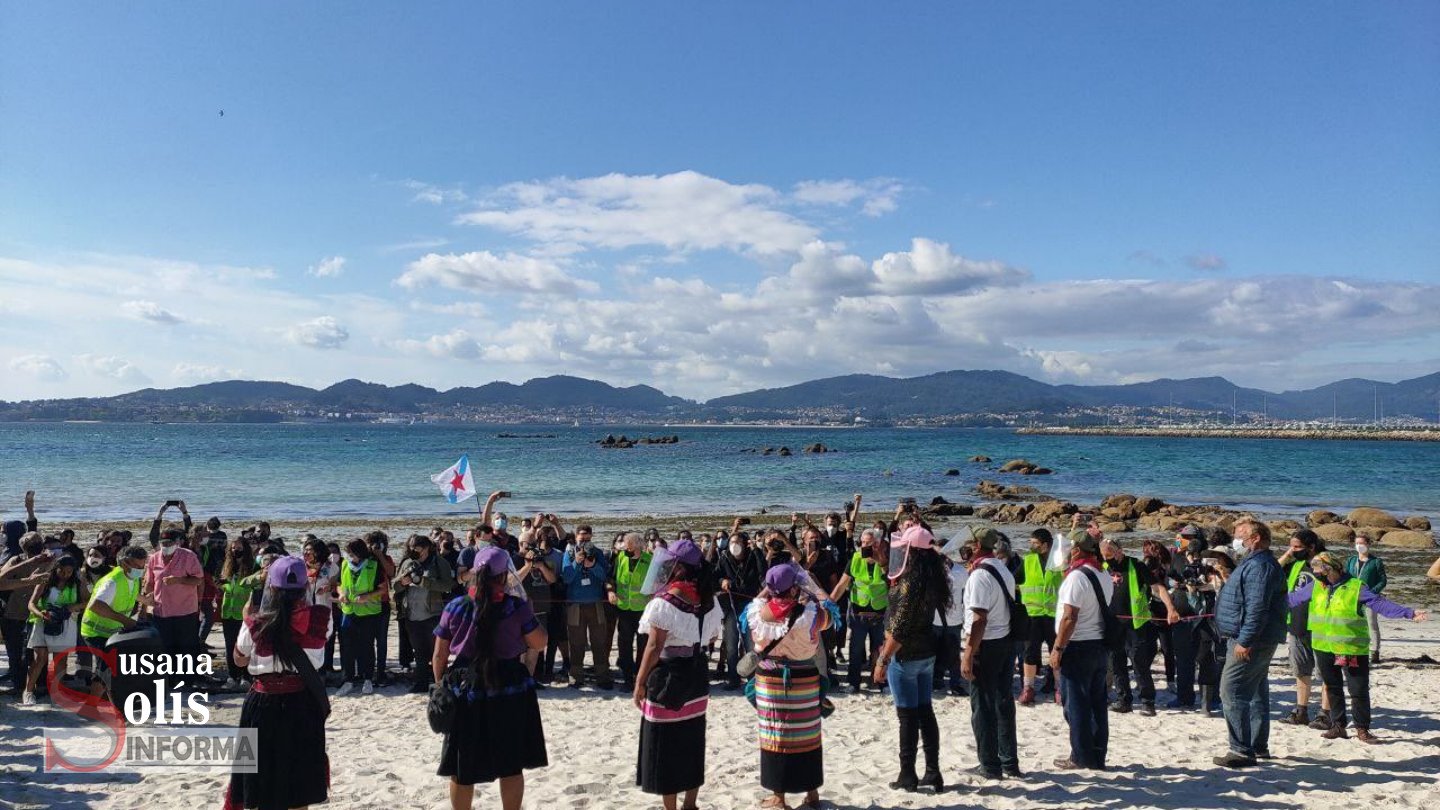 La delegación conformada por siete zapatistas, después de navegar durante 50 días. El Escuadrón 421, integrado por Marijose, Lupita, Carolina, Ximena, Yuli, Bernal y Darío, fue recibido en medio de un ambiente festivo en Playa de Carril, en Vigo, Galicia por decenas de activistas.