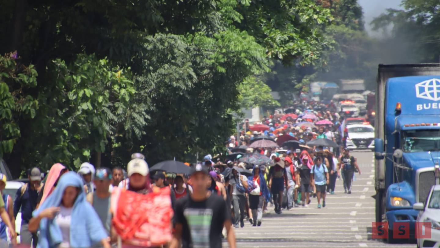 La primera caravana que partió fue pequeña con unas cien personas y más tarde más de cuatro mil migrantes entre hombres, mujeres e infantes caminaron con destino al municipio de Huixtla, donde esperan obtener un permiso temporal.