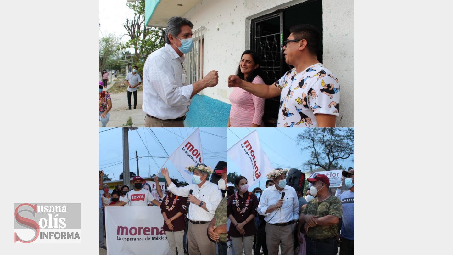 Acompañado de Flor Esponda Torres, candidata a diputada local por el distrito 2, Carlos Morales Vázquez, fue escuchando las peticiones y las muestras de agradecimientos por las obras ahí realizadas como son pavimentación, alumbrado público, drenaje y agua potable. Doña Mirena Moreno Fernández agradeció a Carlos Morales por los contenedores de basura “ya que los montones a media calle son cosas del pasado y los perros ya no la riegan por todos lados".