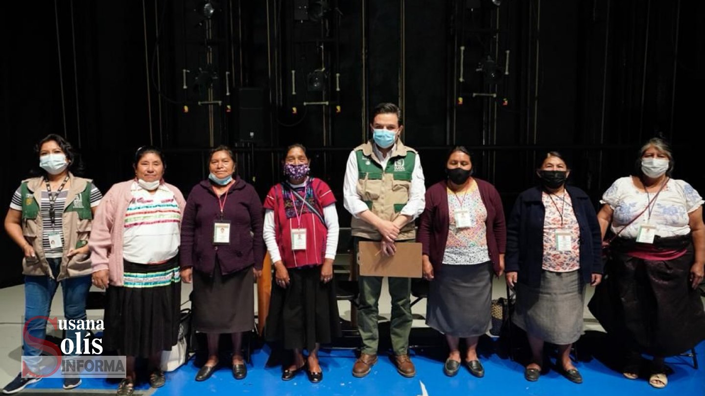 Tras la atención a los medios de comunicación, el director general del IMSS realizó un recorrido por el macro centro de vacunación del Teatro Hermanos Domínguez donde constató el trabajo coordinado y presenció la vacunación de parteras rurales de la zona, quienes con entusiasmo invitaron a la población a vacunarse.