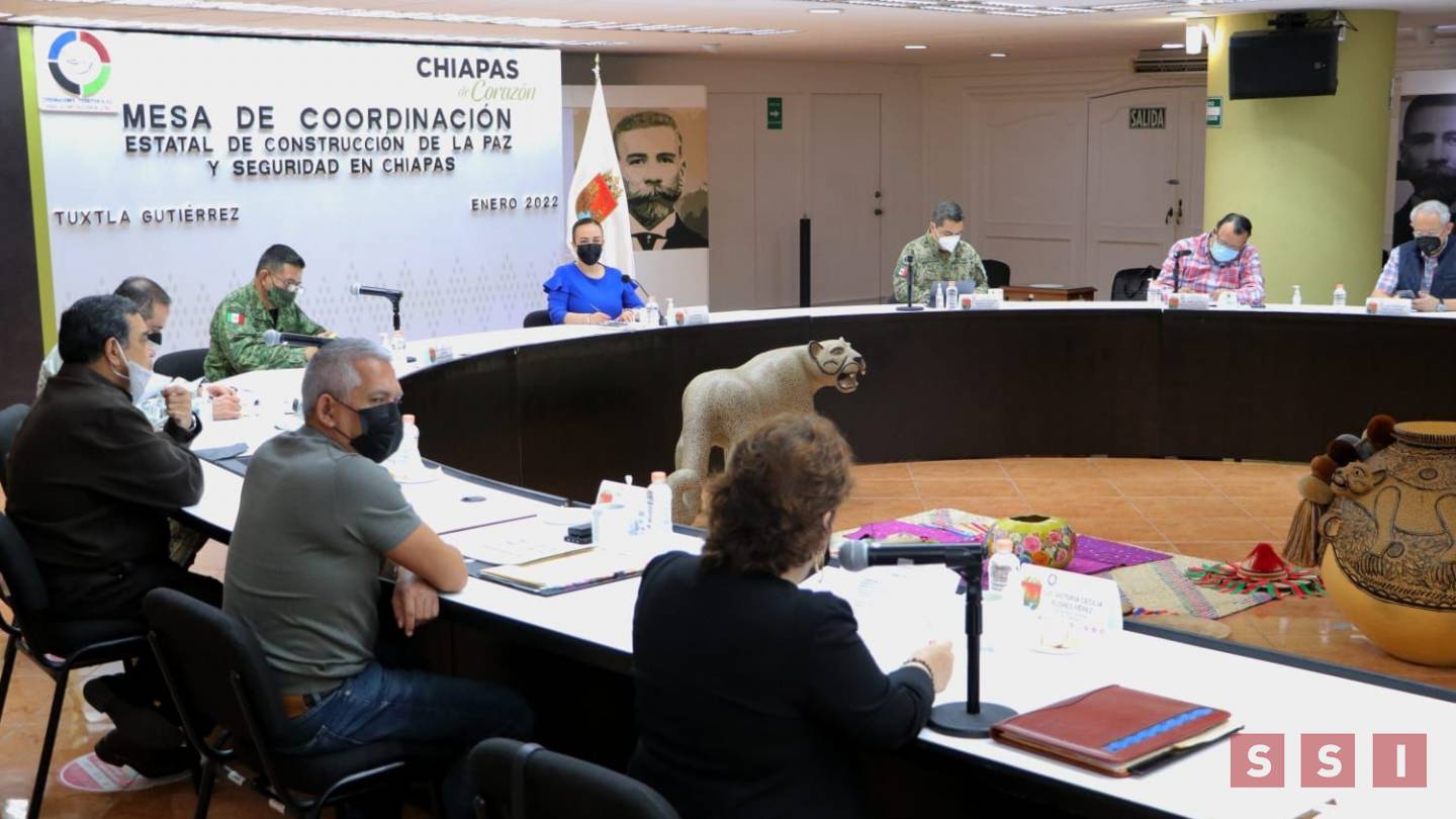 En representación del gobernador Rutilio Escandón Cadenas, la comisaria general Gabriela Zepeda Soto encabezó la Mesa de Seguridad Estatal en Palacio de Gobierno, en la cual informó del resultado de las acciones y estrategias enfocadas en garantizar la salud, el bienestar y la tranquilidad de las y los chiapanecos.