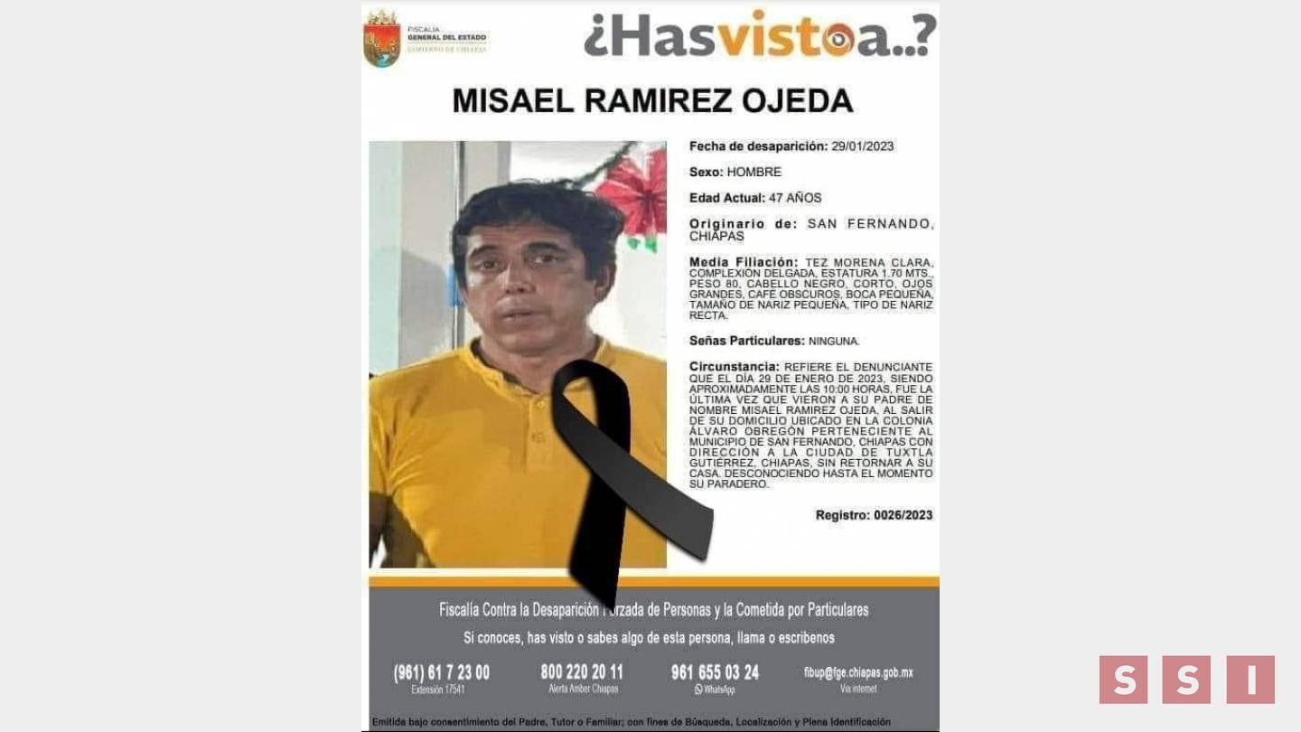 Hoy fue hallado su cuerpo a un costado de su motocicleta, en un canal en la carretera de Tuxtla Gutiérrez a ese municipio a unos metros de la CFE.
