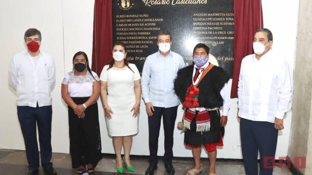 Por la mañana acudió al Congreso del Estado junto al gobernador Rutilio Escandón Cadenas a la imposición de la Medalla “Rosario Castellanos”, al pintor, grabador, muralista maya, Antonio Ramírez Intzin.