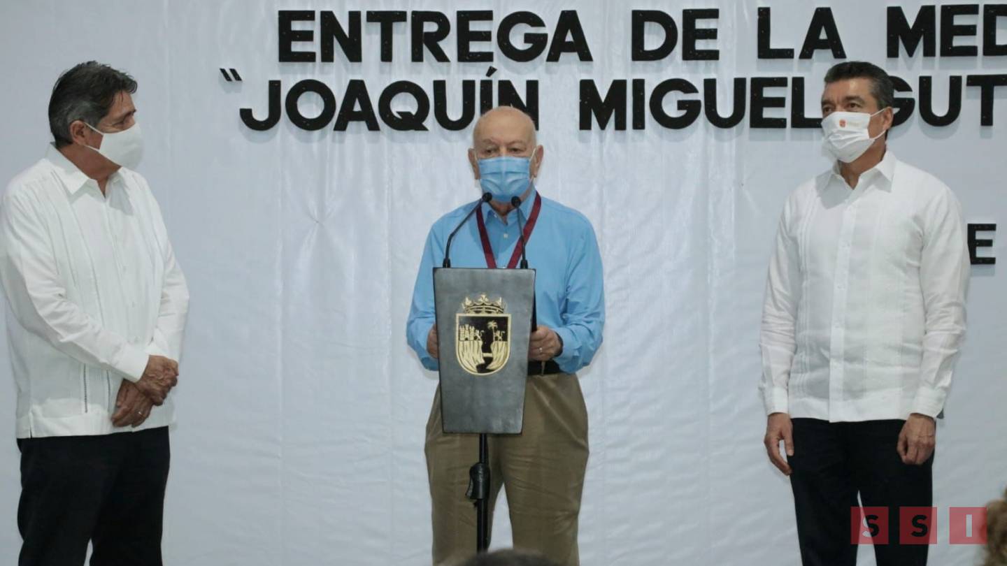 El pasado 18 de noviembre el presidente municipal Carlos Morales Vázquez, acompañado del gobernador del Estado, Rutilio Escandón Cadenas, entregó la medalla de Honor al mérito ciudadano “Joaquín Miguel Gutiérrez” al exsecretario de Gobernación y ex gobernador de Chiapas, José Patrocinio González-Blanco Garrido en reconocimiento a su trayectoria que ha forjado la historia del municipio de Tuxtla Gutiérrez y del estado.