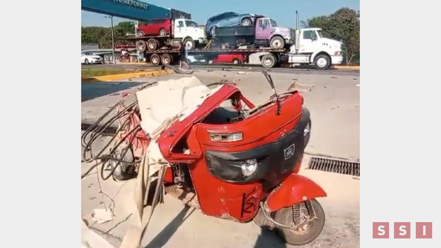 Los paramédicos de protección civil acudieron de inmediato para atender a las dos personas lesionadas que viajaban en el mototriciclo, el cual quedó completamente destruido.