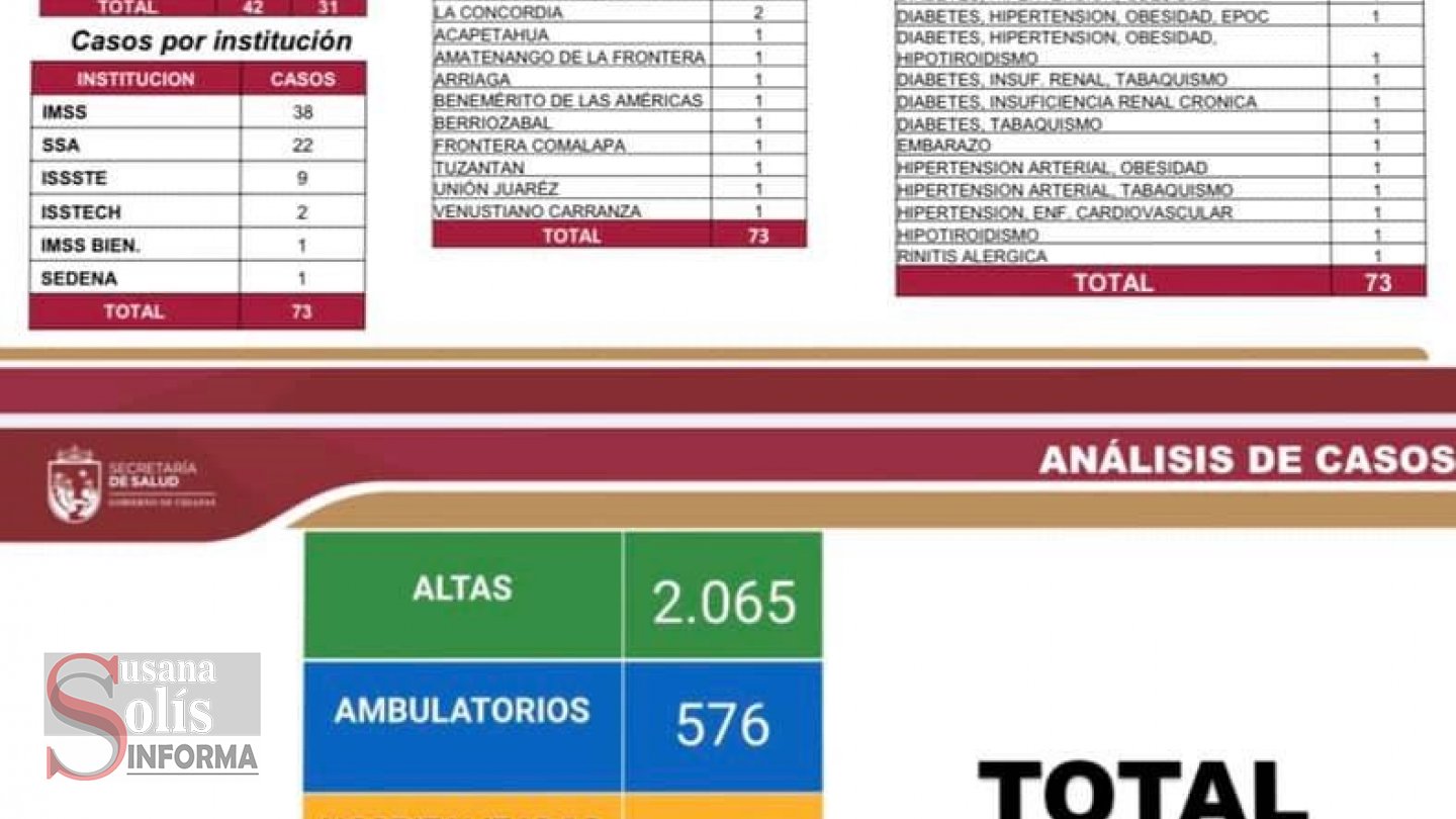 En el caso de defunciones, las diferencias son críticas, porque mientras en el estado se informa de 225 defunciones, la federación registra 311; una diferencia de 86 fallecimientos que a decir del titular de salud de Chiapas son los decesos que han ocurrido en las clínicas del Instituto Mexicano de Seguro Social que reportan directamente a la Subsecretaría de Salud que es la encargada de compilar toda la información nacional.