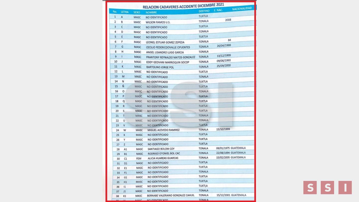 A la fecha hay 18 migrantes que ya fueron identificados tras el accidente de pasado jueves en la carretera Chiapa de Corzo a Tuxtla Gutiérrez, en el que fallecieron 55 personas.