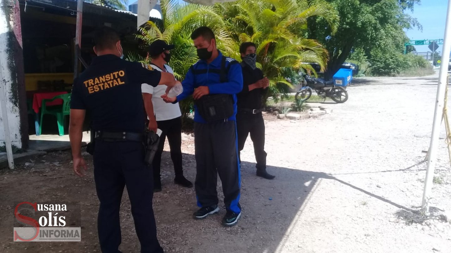 Desde temprana hora se estableció un filtro de información en el crucero de La Libertad, para concientizar a las personas que viajan en transporte público y particular hacia Palenque. Se les recordó que si no tienen necesidad de salir, mejor se queden en casa.