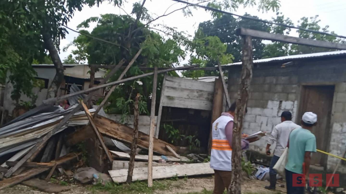 En Salto de Agua al menos 20 familias resultaron afectadas por desprendimiento de techumbre de sus viviendas en el Ejido Pino Suárez.