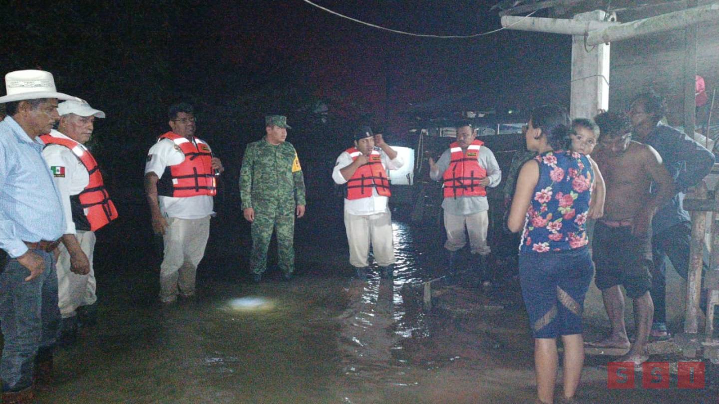 Realizaron recorrido para detectar afectaciones y brindar atención en las comunidades de Santa Cruz Tepate Abajo y las Mirandas donde prevalecen encharcamientos en traspatios, derivado a los escurrimientos de afluentes y el río Pichucalco.