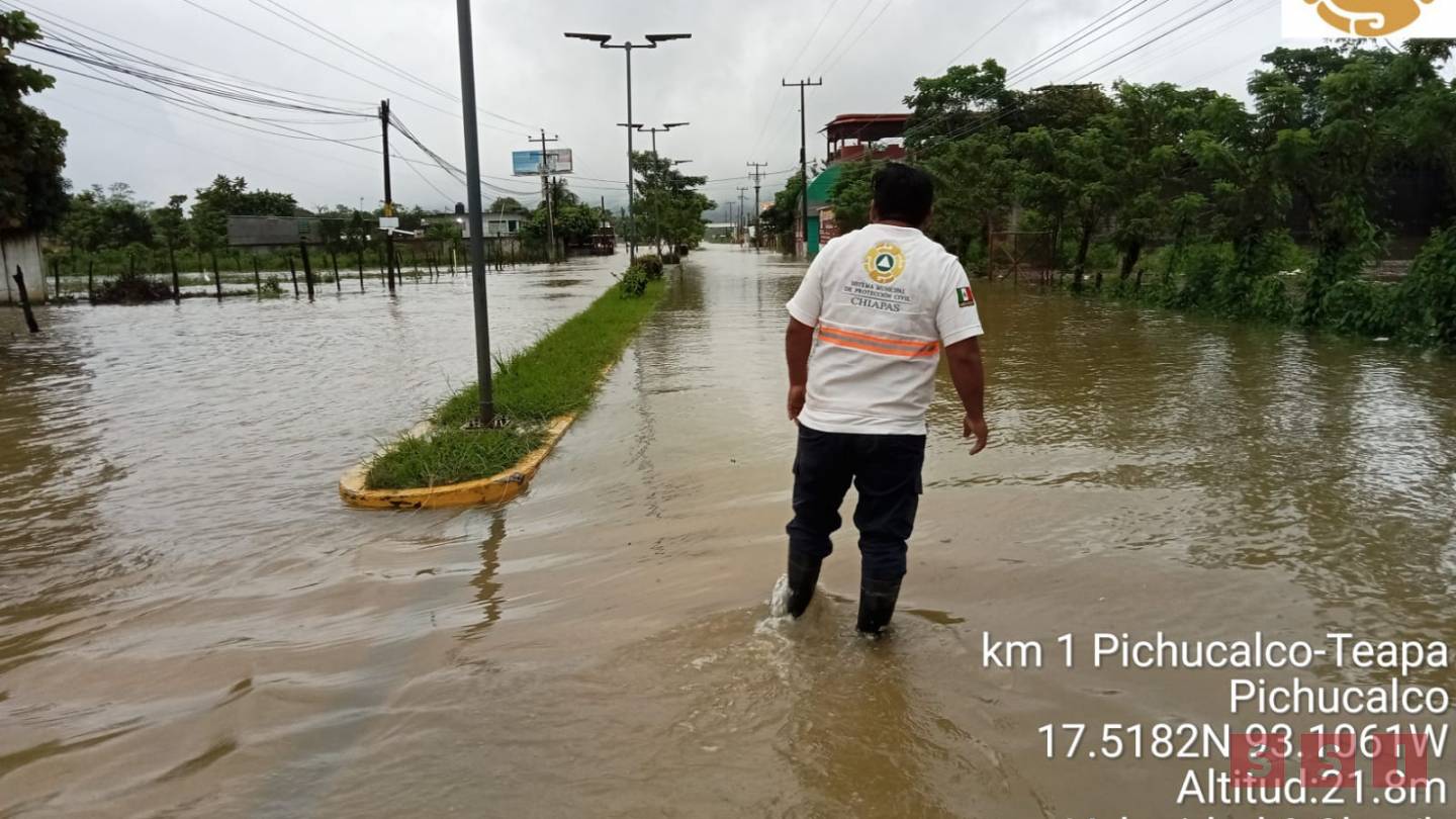En Pichucalco se presentó anegación con tirantes de hasta 50 centímetros en el acceso principal a la altura del libramiento y la Universidad Valle del Grijalva de la cabecera municipal.