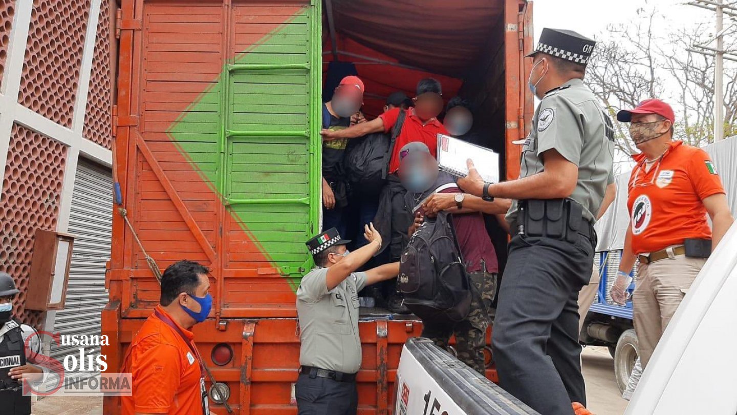 El Instituto Nacional de Migración (INM), y la Guardia Nacional (GN), identificó a 329 personas migrantes de origen centroamericano, que viajaban en condiciones de hacinamiento en la caja de tres camiones tipo torton, y puso a disposición de la autoridad a tres choferes por el posible delito de tráfico de personas.