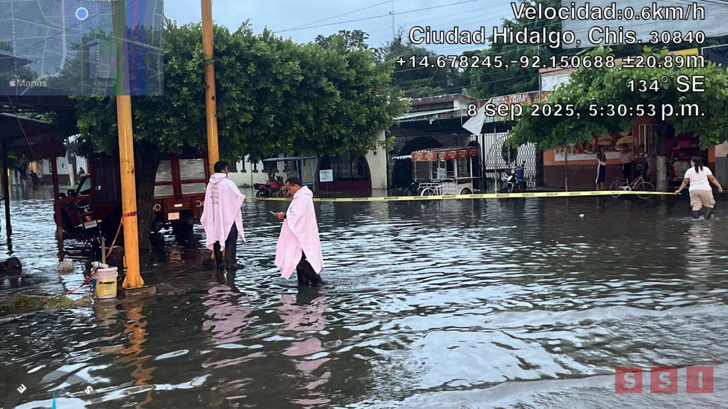 La Secretaría de Protección Civil informa que en Suchiate las intensas lluvias de ayer por la tarde provocaron inundaciones en la cabecera municipal, afectando a las colonias San Juan, Centro, Barrio Nuevo y Fraccionamiento Vida Mejor.