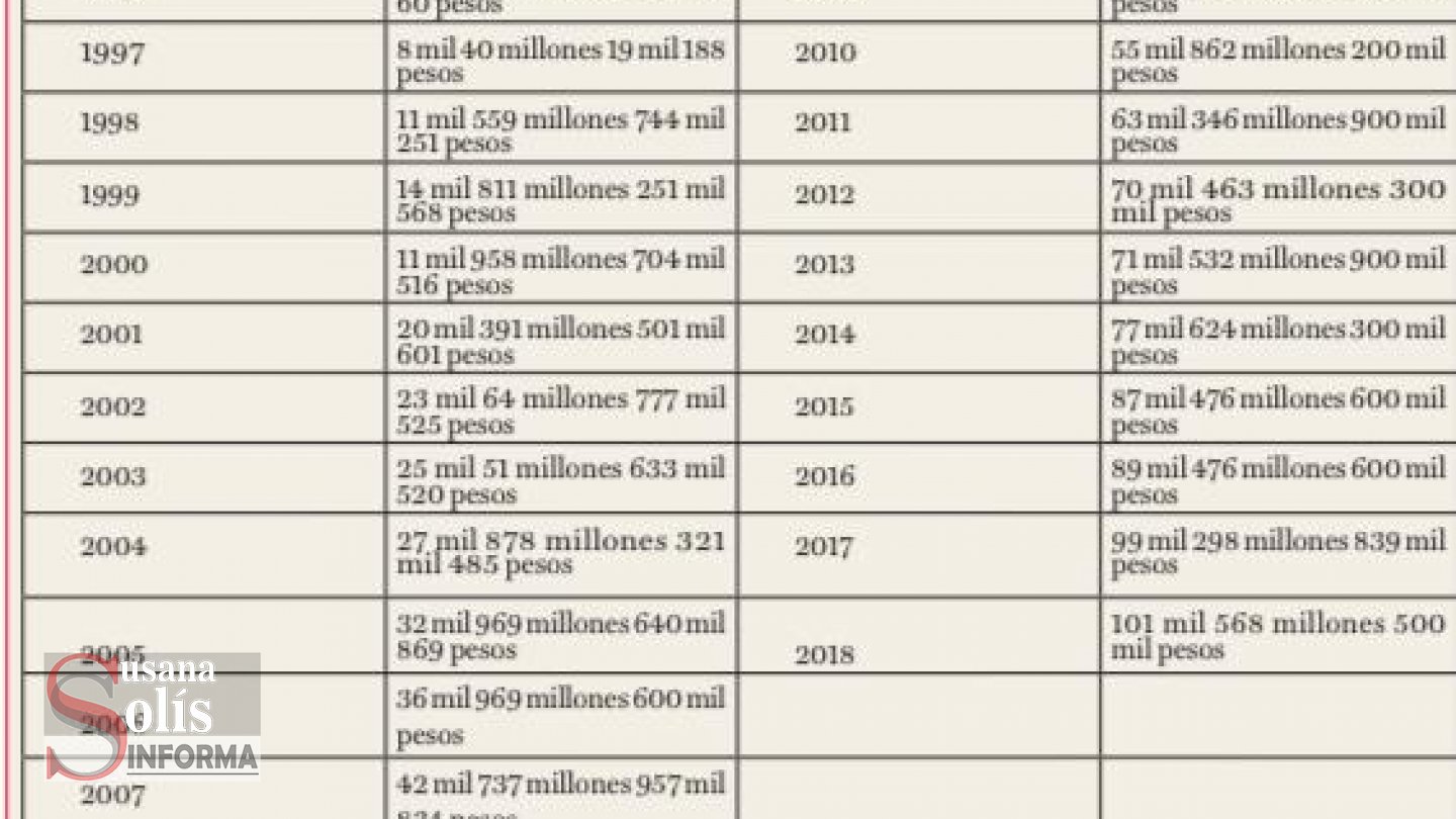 La constante que se observa es que cada año hay un aumento de entre 2 a 3 mil millones de pesos; a excepción del 2000 donde el presupuesto bajó 3 mil millones; mientras en 1999 fue de 14 mil millones para el siguiente año fue de 11 mil. Cabe destacar que en ese año ocurrió la primera transición democrática al ganar Vicente Fox como presidente y Pablo Salazar como gobernador.