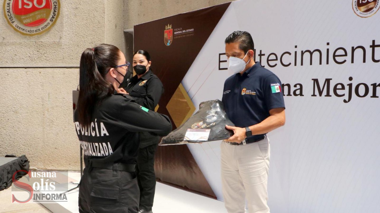Acompañado por Jordán de Jesús Alegría Orantes, fiscal de Coordinación; Gabriela del Socorro Zepeda Soto, secretaria de Seguridad y Protección Ciudadana; y Yaneth Herrera Bonilla, directora general de la Policía Especializada; Llaven Abarca expresó que hoy en Chiapas hay una Fiscalía del Estado comprometida con dignificar y fortalecer las capacidades de las y los servidores públicos que tienen la encomienda de velar por la seguridad y la justicia de las y los chiapanecos.