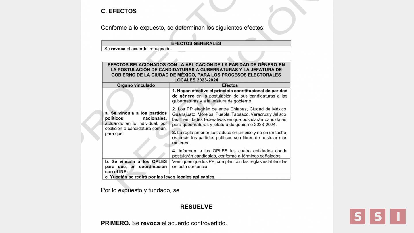 El Tribunal Electoral del Poder Judicial de la Federación, podría revocar el acuerdo del Consejo General del Instituto Nacional Electoral, INE /CG569/2023 de paridad en las gubernaturas, es decir los partidos políticos, solo elegirían a 4 mujeres.