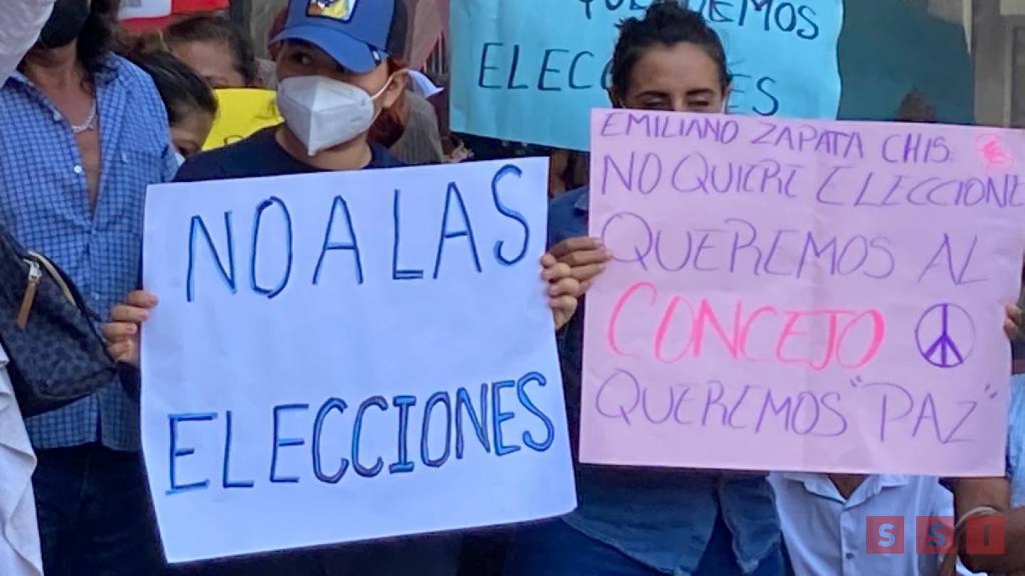 Este día, decenas de habitantes de varias comunidades del municipio de Emiliano Zapata en Chiapas, se manifestaron en la capital chiapaneca en apoyo a la continuación de un Concejo Municipal y evitar que haya elecciones extraordinarias en esa localidad.