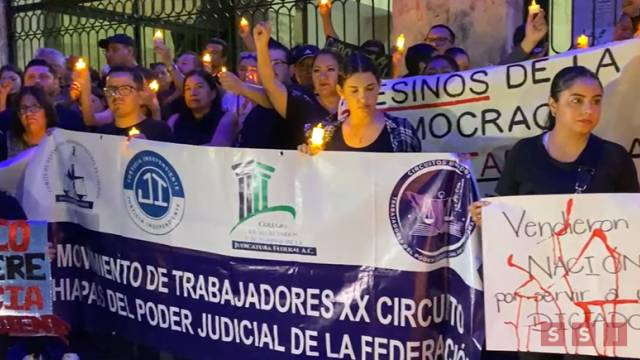 Tras la aprobación en la Cámara de Diputados la reforma al Poder Judicial para elegir por voto popular a jueces y magistrados y ministros de la Suprema Corte, de Justicia de la Nación, trabajadores de la institución se manifestaron frente al Congreso del Estado de Chiapas.