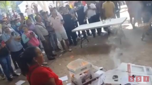 Este sábado en el distrito 13 de Huehuetán, integrantes del grupo radical de izquierda del Frente Popular de esa localidad, quemaron boletas y casillas para la elección de consejeros de Morena.