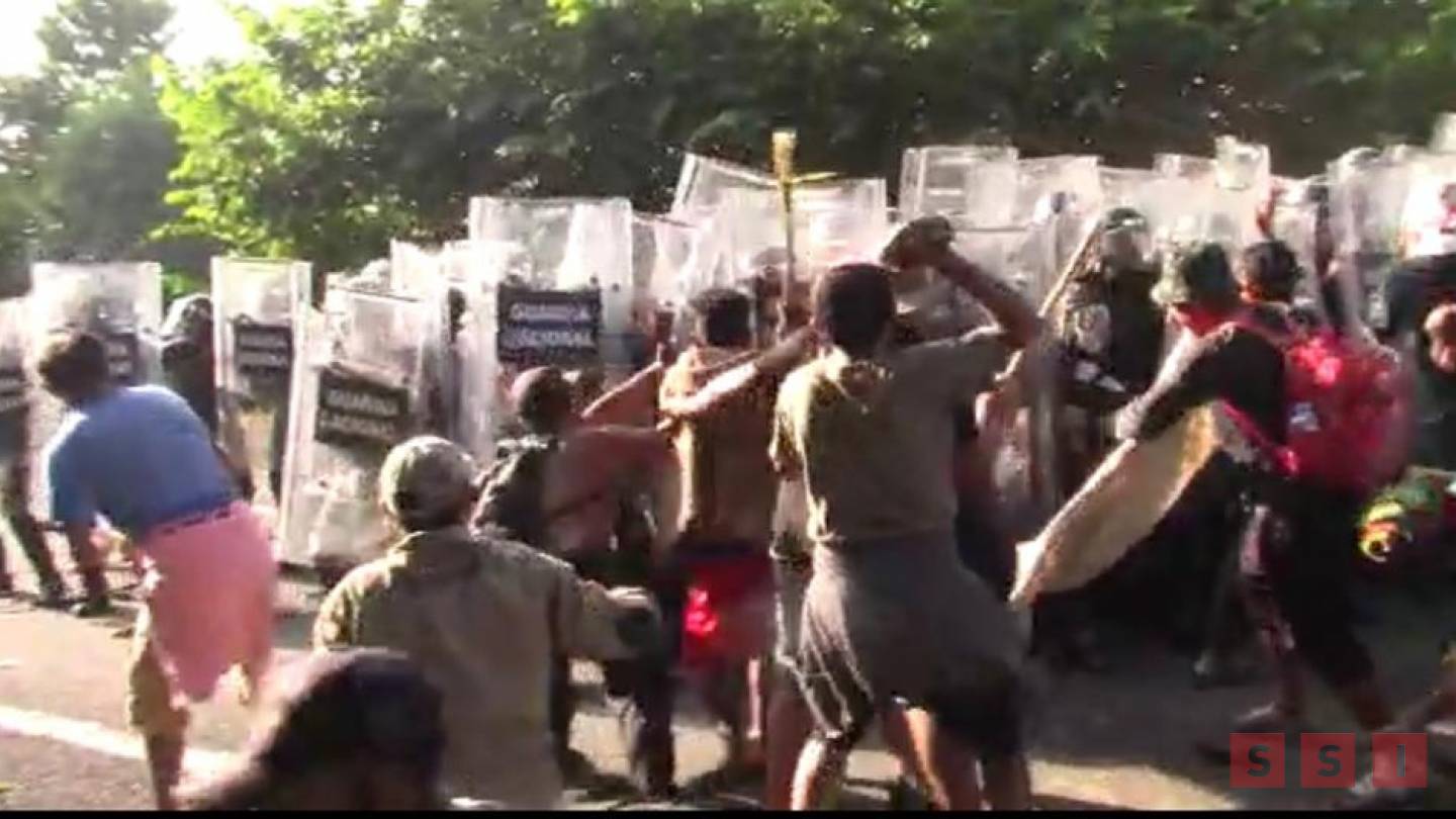 La Guardia Nacional pretendía encapsular a los migrantes y estos armados con palis y piedras evitaron que los detuvieran por parte del Instituto Nacional de Migración.