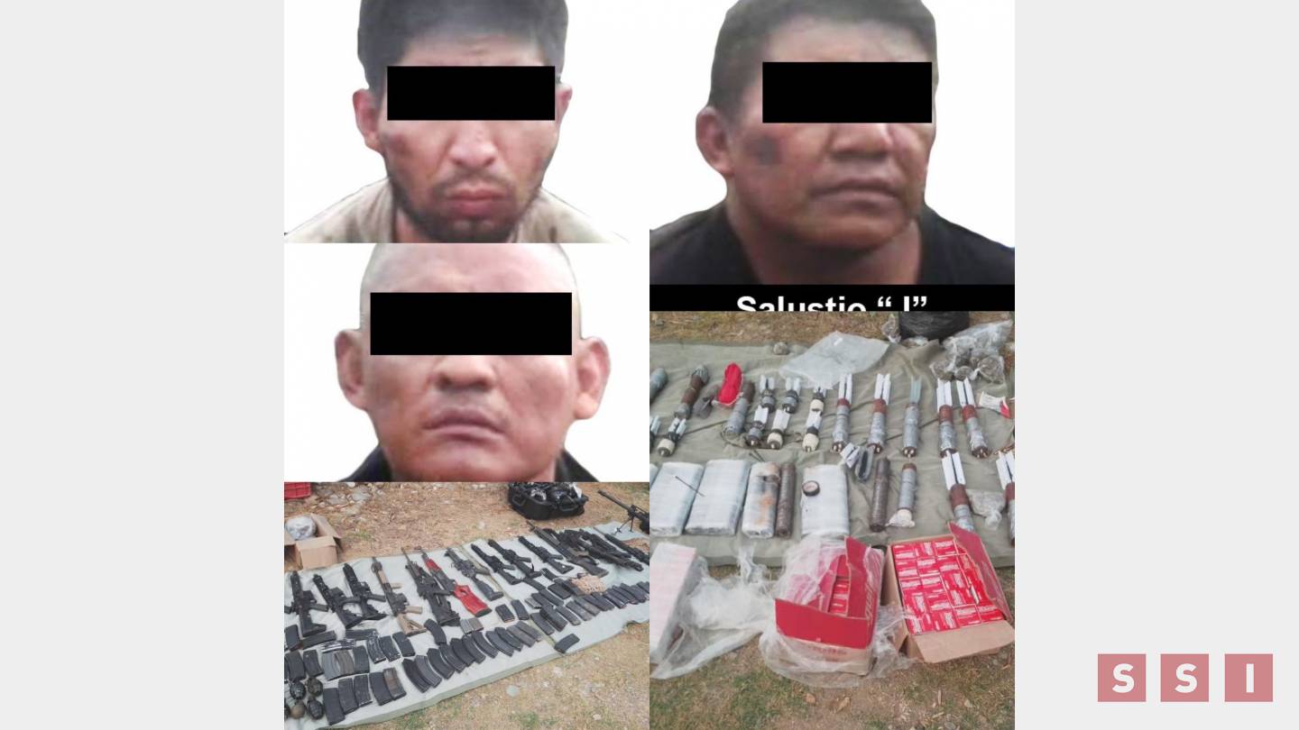 Lo anterior, derivado de la puesta a disposición por parte de elementos de la Secretaría de la Defensa Nacional (SEDENA), quienes detuvieron en flagrancia a Aristóteles “B”, Salustio “J” y Miguel “G”, cuando portaban armas de fuego tipo fusil con cargadores y cartuchos útiles, además de una granada de fragmentación y tres vehículos.